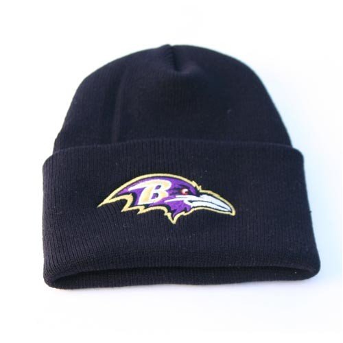 Reebok Baltimore Ravens Classic Cuffed Knit Hat in Black. Keep your head warm while rooting for your favorite team at the next big game by wearing this hat from Reebok. This durable knit hat is made of soft, quick-drying and wrinkle resistant acrylic. The officially licensed hat is decorated in the team colors and proudly displays the embroidered team graphic on the front.